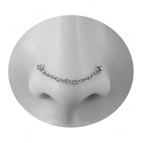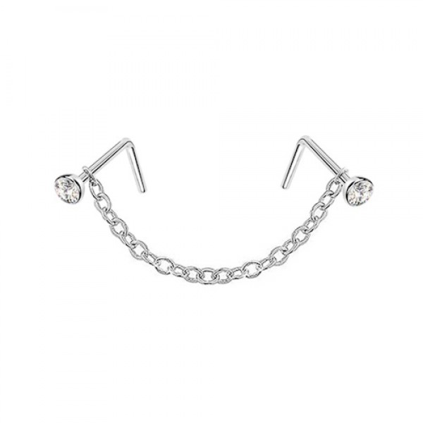 Piercing Corrente Nariz 2 Nostril "L" Pedra Crystal Aço 316L